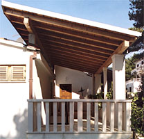 Auch die Rückseite des Hauses ist mit seinem offenen Haushang schön gestaltet.