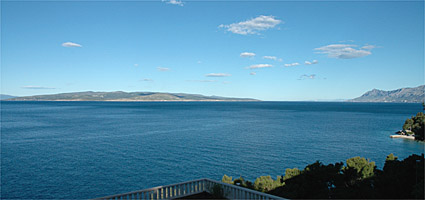 in Richtung der Insel Brac. Rechts das Festland um Omis |