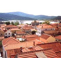 Ston - im Hintergrund die Felder für